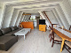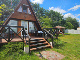 Duży domek letniskowy murowany: dwa pokoje, salonik z kominkiem, kuchnia z aneksem jadalnym, łazienka z prysznicem, ciepła woda, kanalizacja, centralne ogrzewanie, TV SAT. Przy domku znajduje się duża wiata z grillem murowanym i oświetleniem wyłącznie do dyspozycji gości mieszkających w domku. Ilość miejsc noclegowych w domku to 6 - 8 osób.